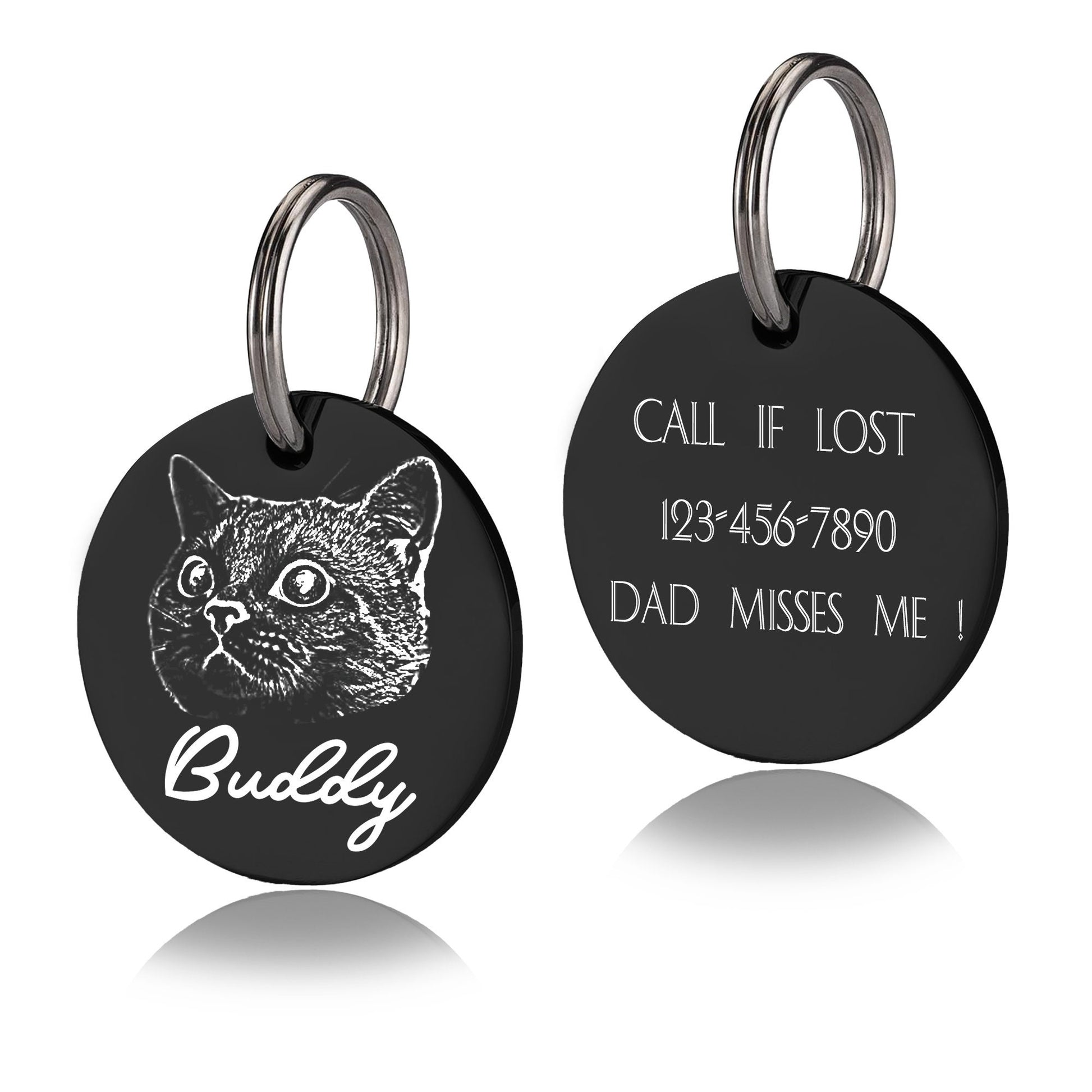 Custom Photo Dog Tag, Personalized Dog Tag, Pet Name Tag, Dog and Cat ID Tag, Stainless Steel Pet Tag, Round Cat Tag, Custom Pet Collar Tag