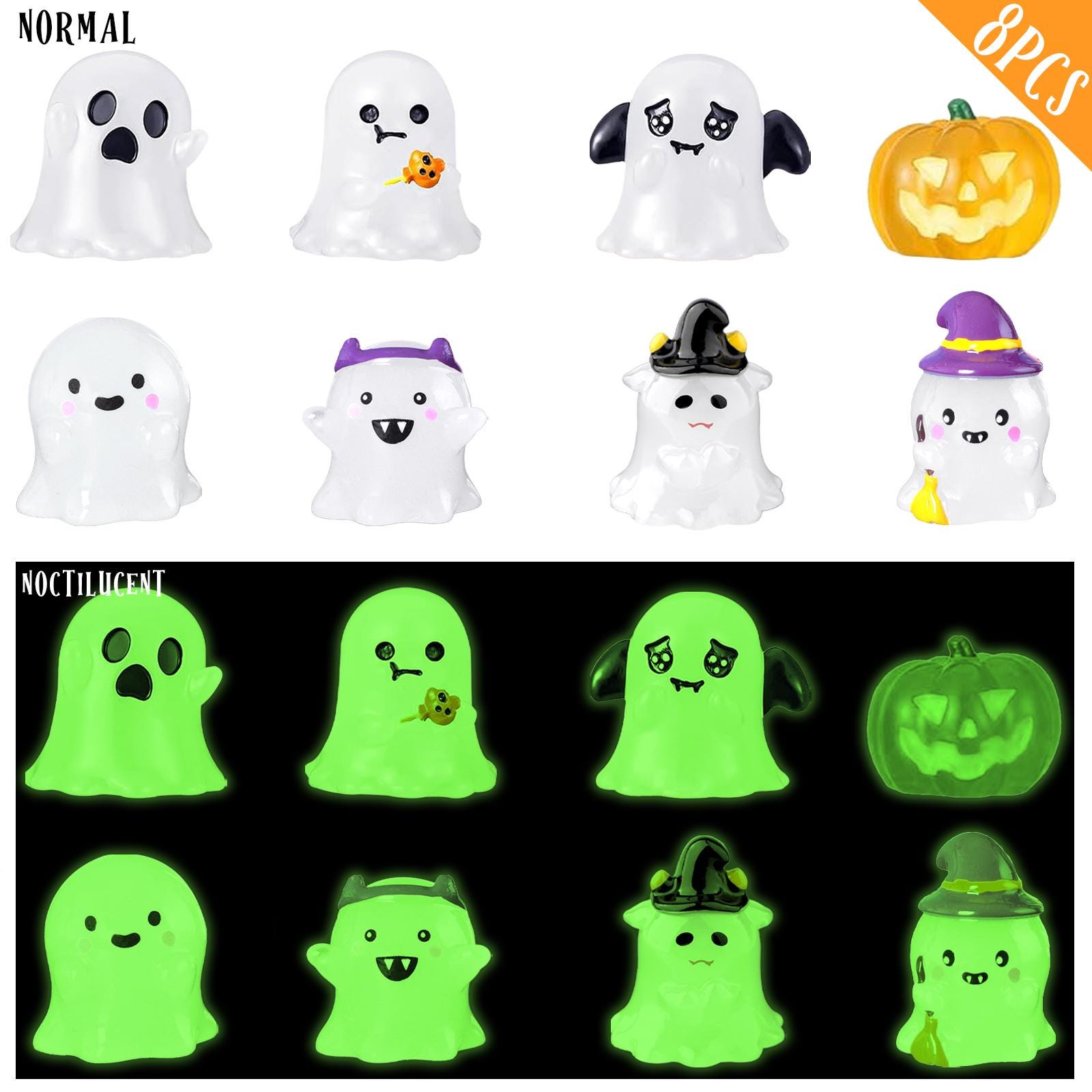 Cute Glowing Ghost Decor - Halloween Luminous Ghost Decor Set - Spooky Pumpkin Car Accessories - Ghost Luminous Decoration - Halloween Gifts