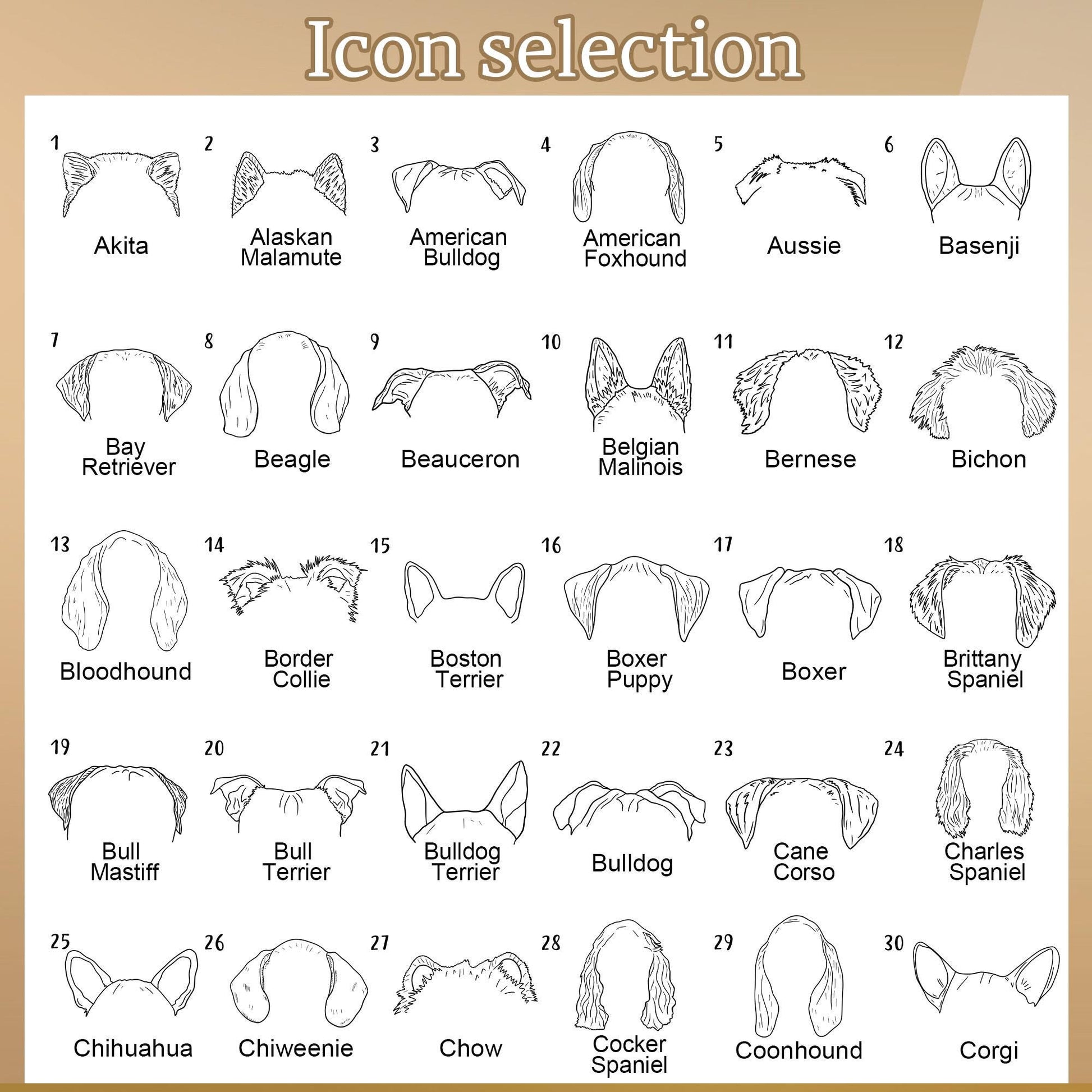 Dog Ears Outline Tag Keychain, Personalized Dog ID Tag, Custom Dog Breed Ears Tag, Engraved Pet Name Tag, Round Pet Tag, Gift for Dog Parent
