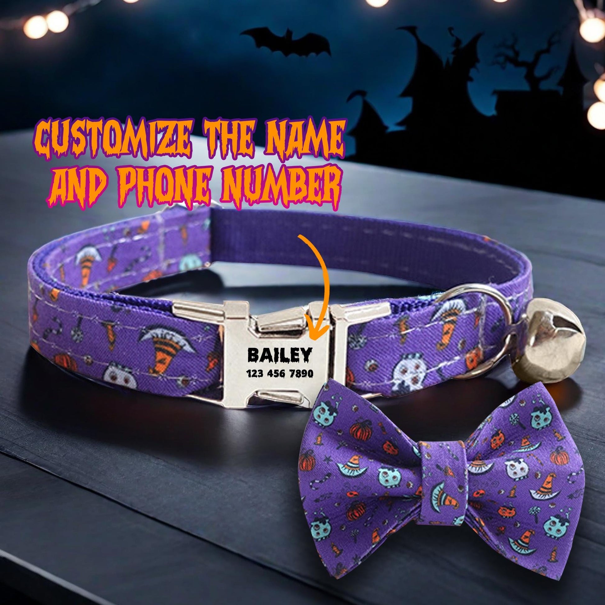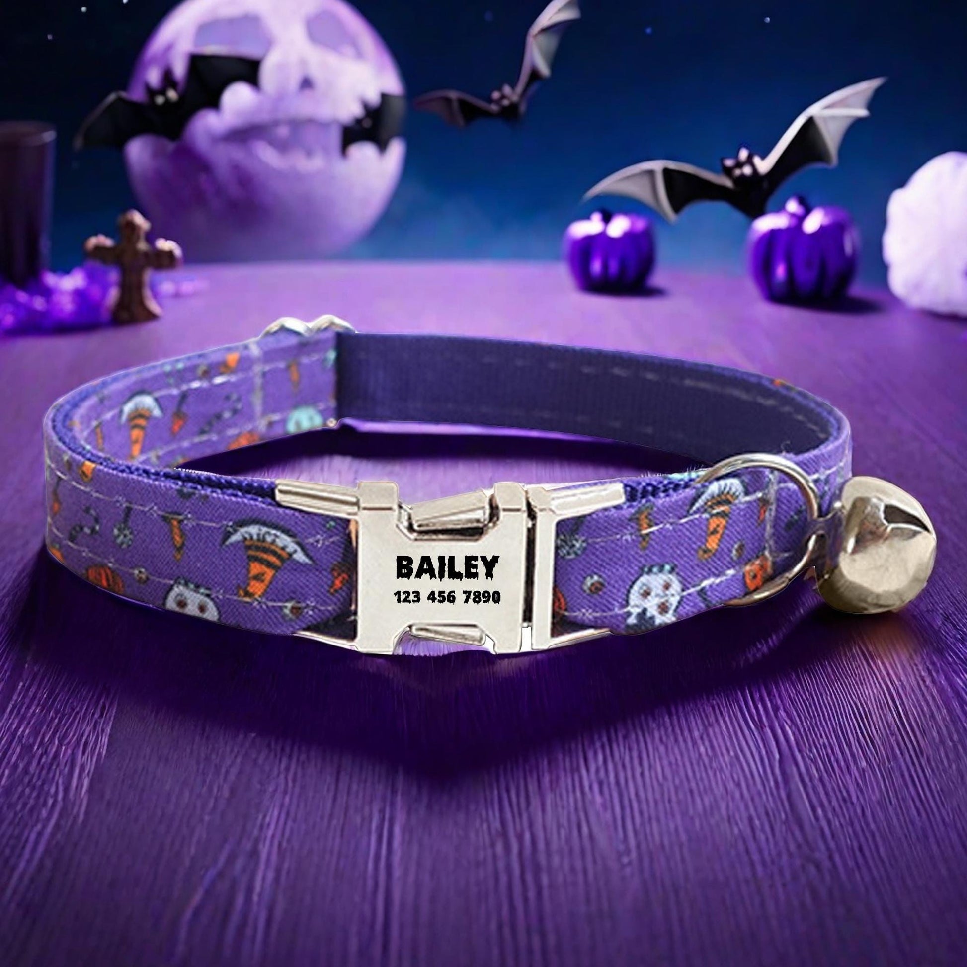 This pet collar with a spooky pumpkin print is perfect for celebrating Halloween. You can also personalize the pet tag with your pet's name or special message to make it a one-of-a-kind accessory.
