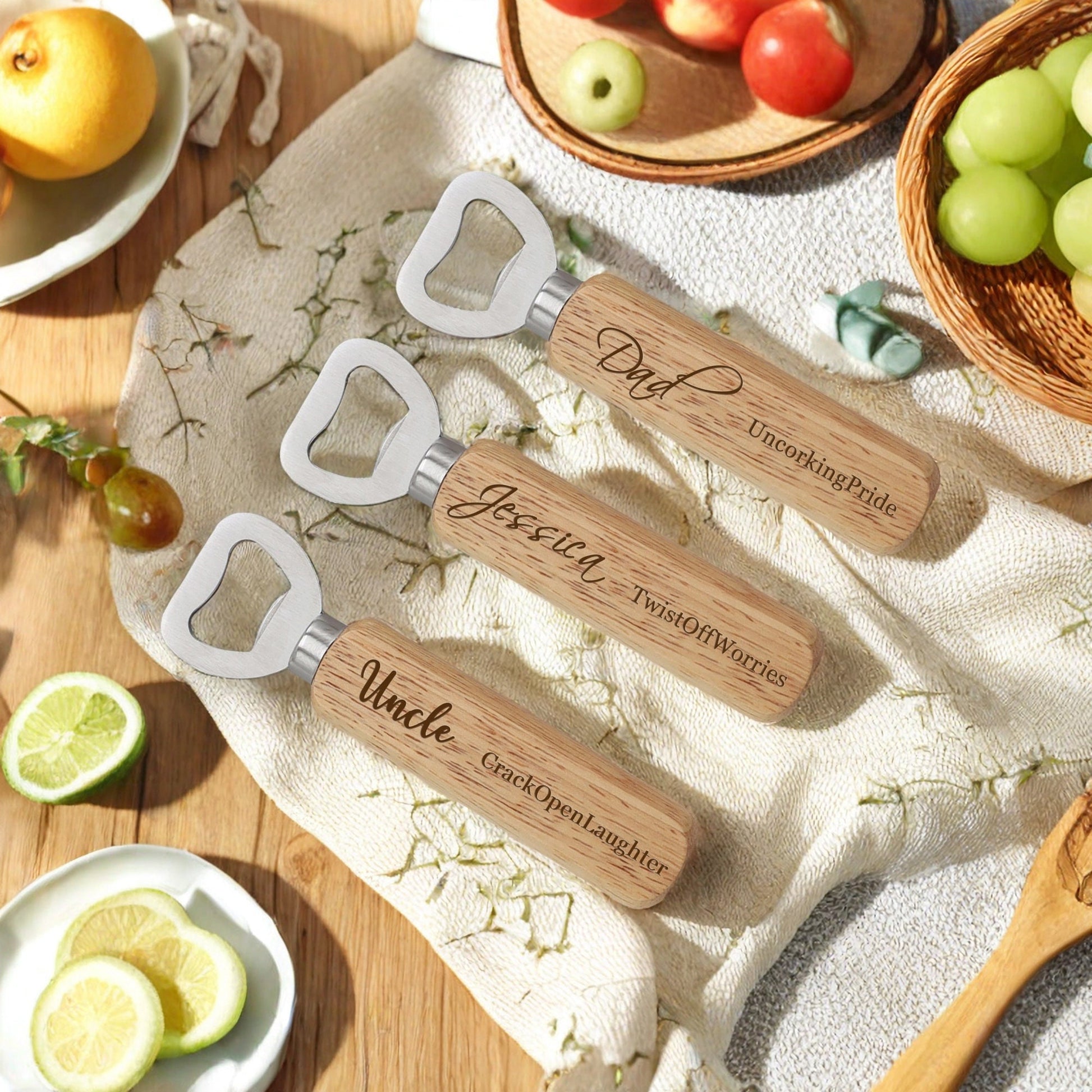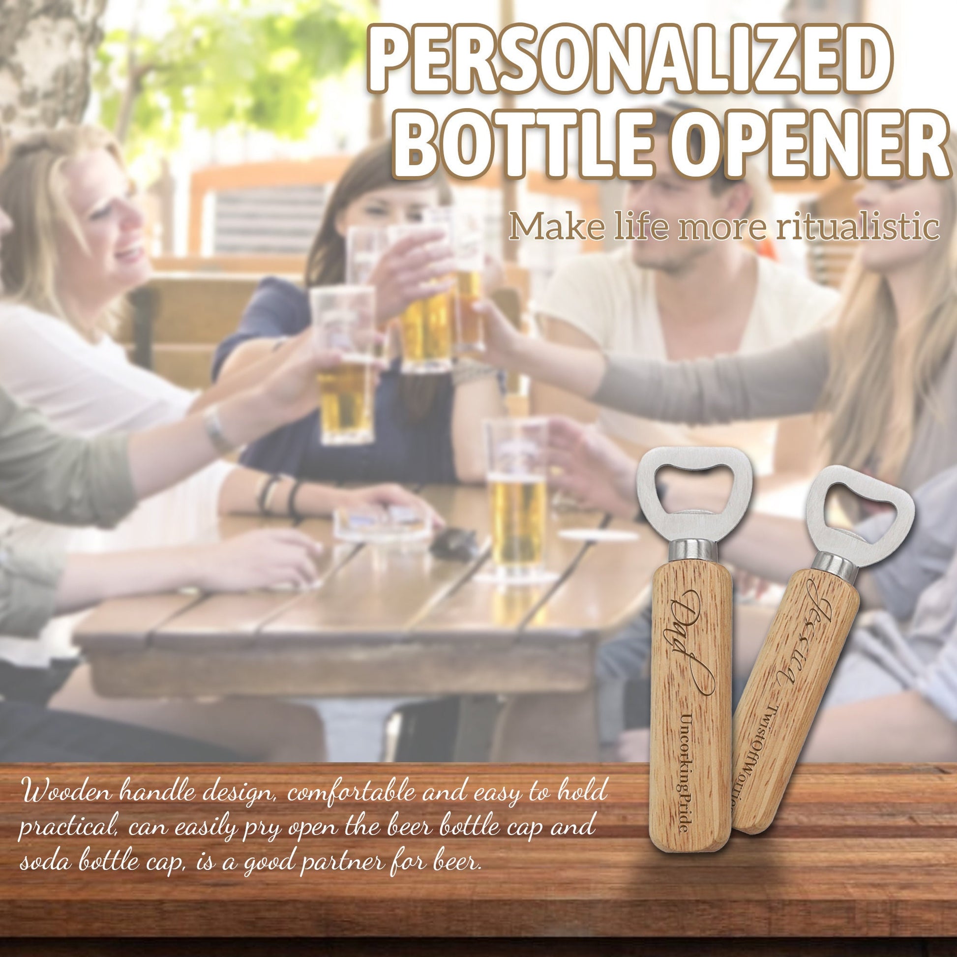 Personalized Bottle Opener, Wooden Handle Bottle Opener, Custom Laser Engraved Bottle Openers, Fathers Day, Birthday, Wedding Gift for Him