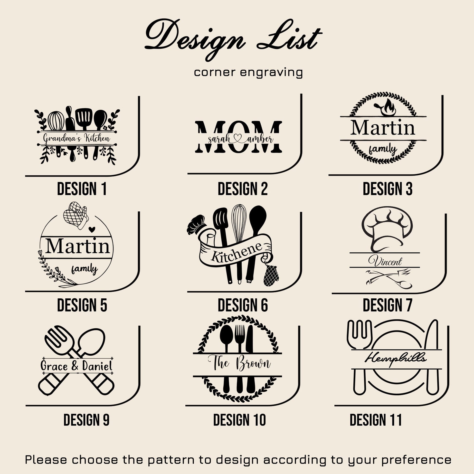 2. Choose the design of cutting board from the drop down menu next to the picture.