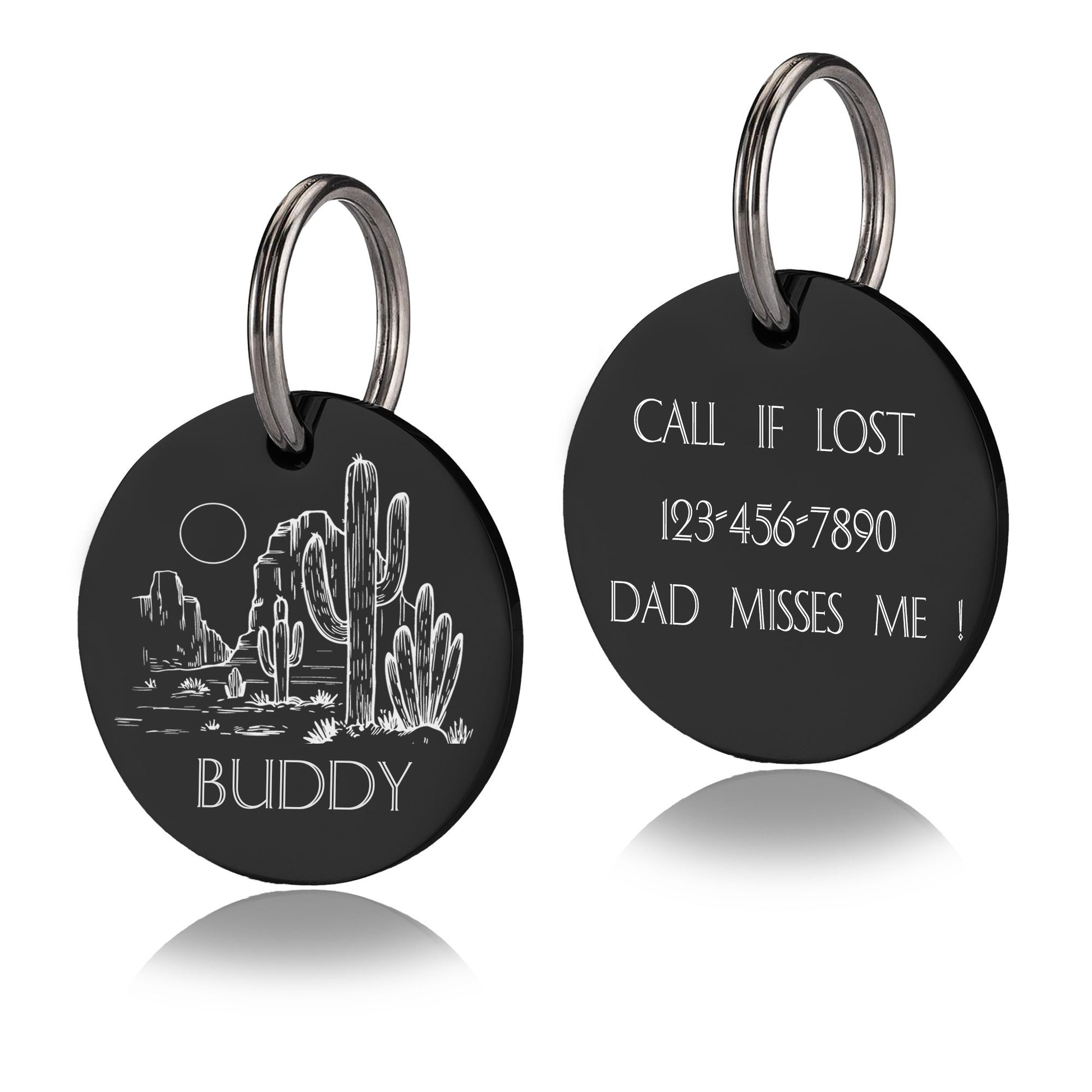 Personalized Dog Tag Custom Dog Name Tag Pet ID Collar Tag Cat Tag Cat Collar Tag Dog ID Tag Stainless Steel Round Pet Tag Silent Dog Tag