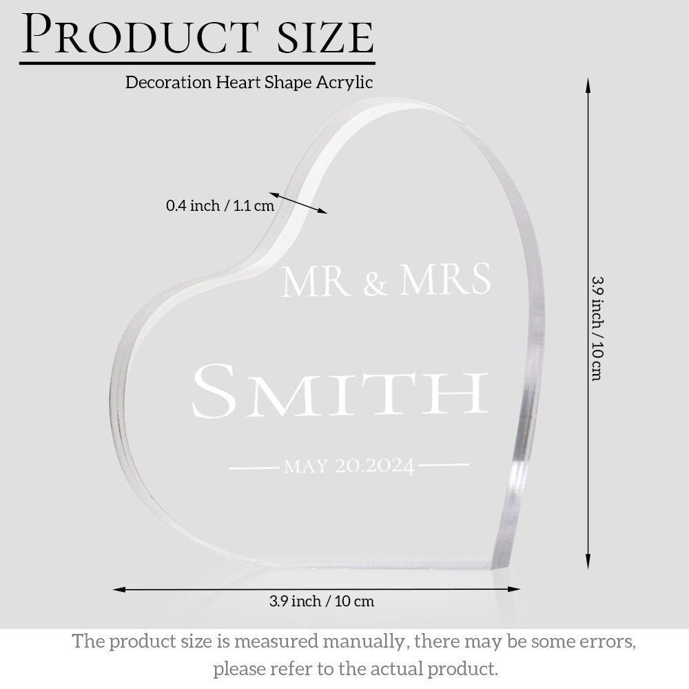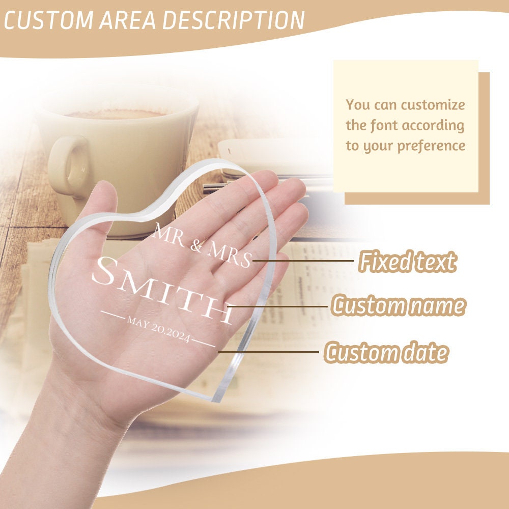 Personalized Heart Acrylic Block, Custom Mr & Mrs Acrylic Plate, Acrylic Heart Shape Stand, Wedding Anniversary Gift for Wife Couple