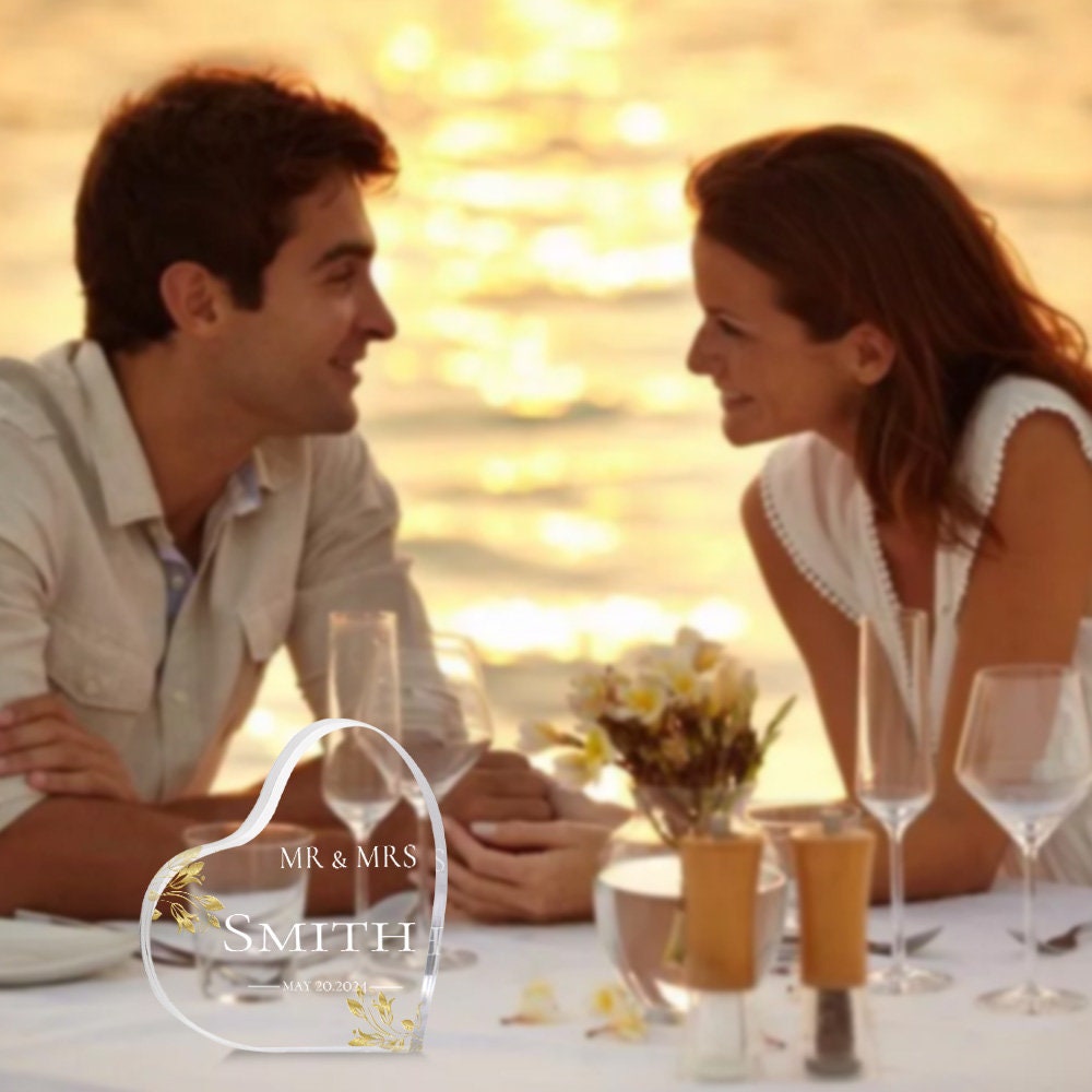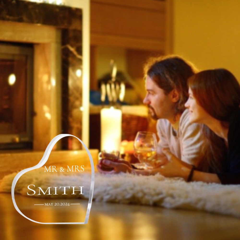 Made of durable acrylic, this heart plaque is beautifully designed with white text showcasing the couple's shared last name. Ideal for anniversaries or housewarming celebrations, it makes a thoughtful and meaningful gift for newlyweds or couples celebrating their life together.