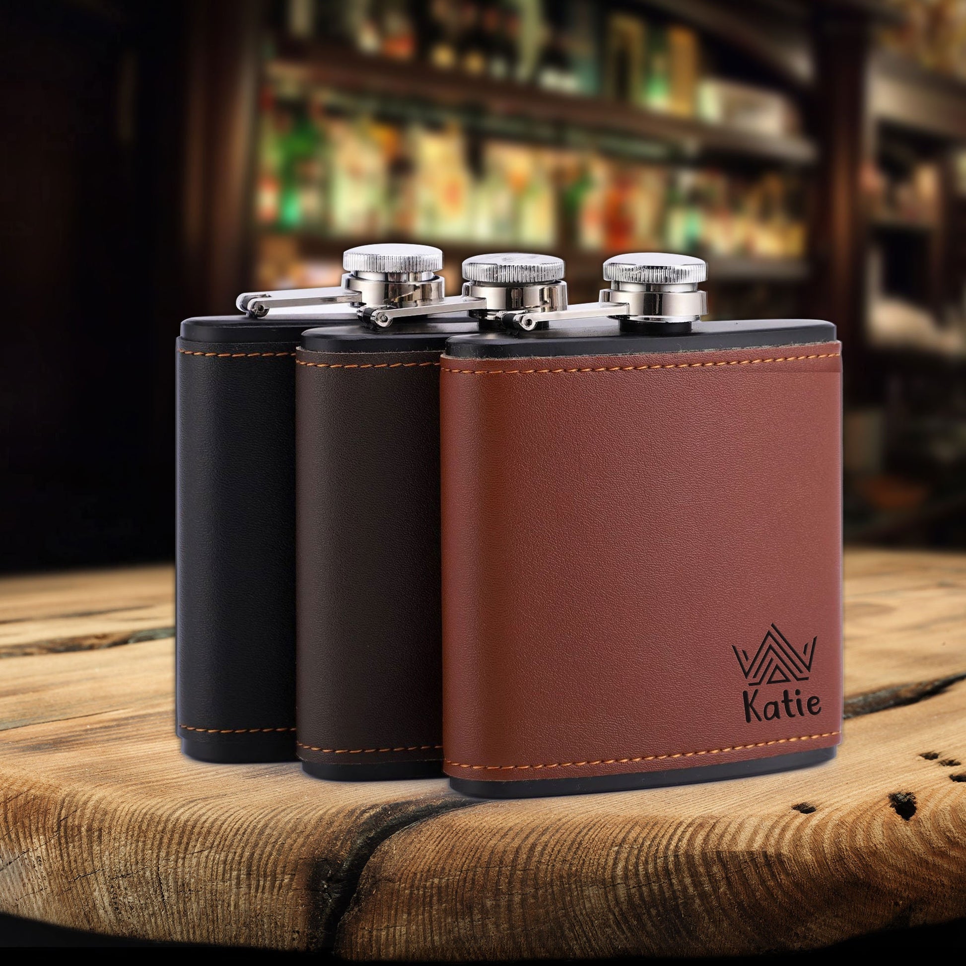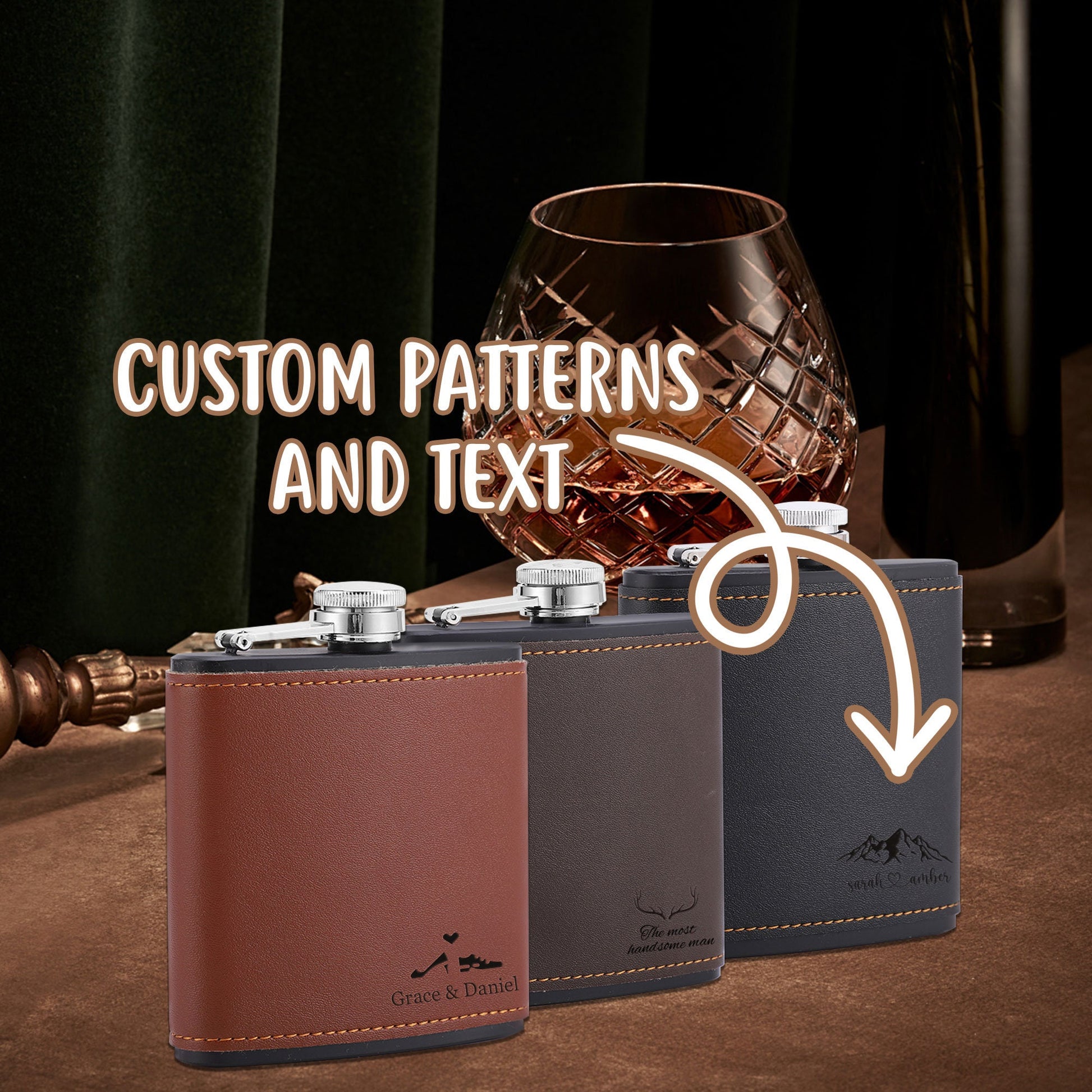 Personalized Hip Flask, Engraved Leather Flask, Custom Groomsmen, Birthday Gift for Dad, Wedding Gift for Best Men, Bachelor Party Gifts
