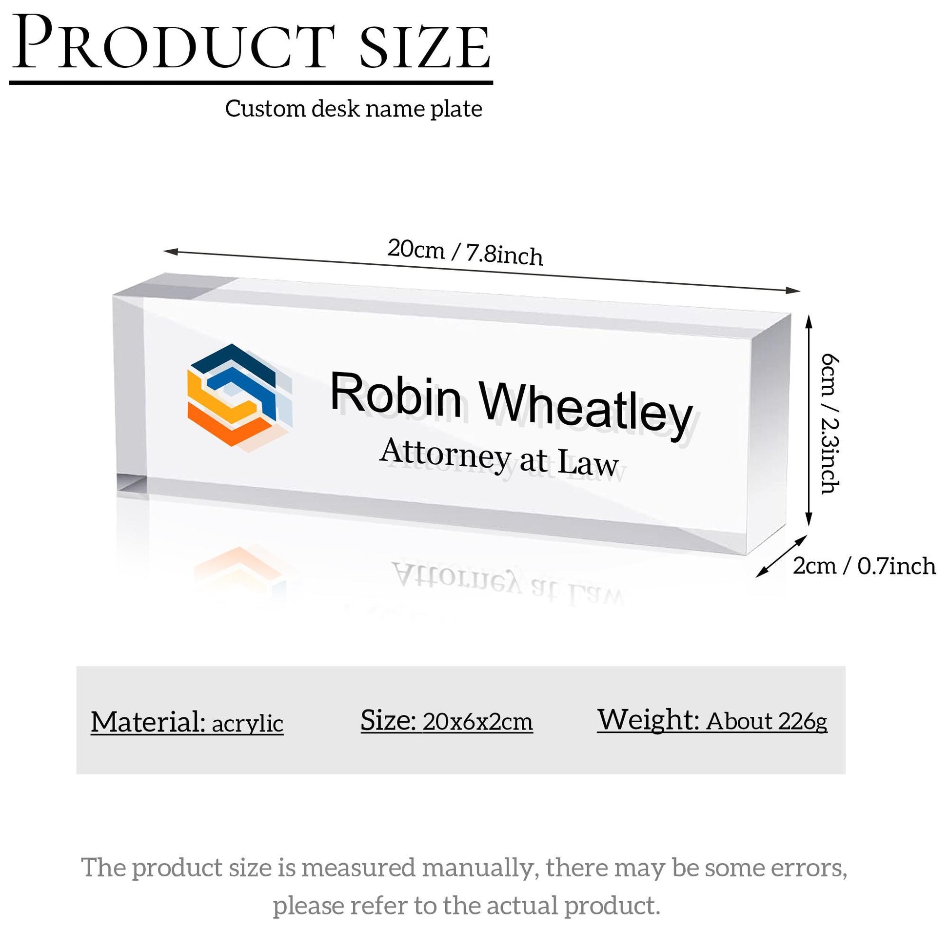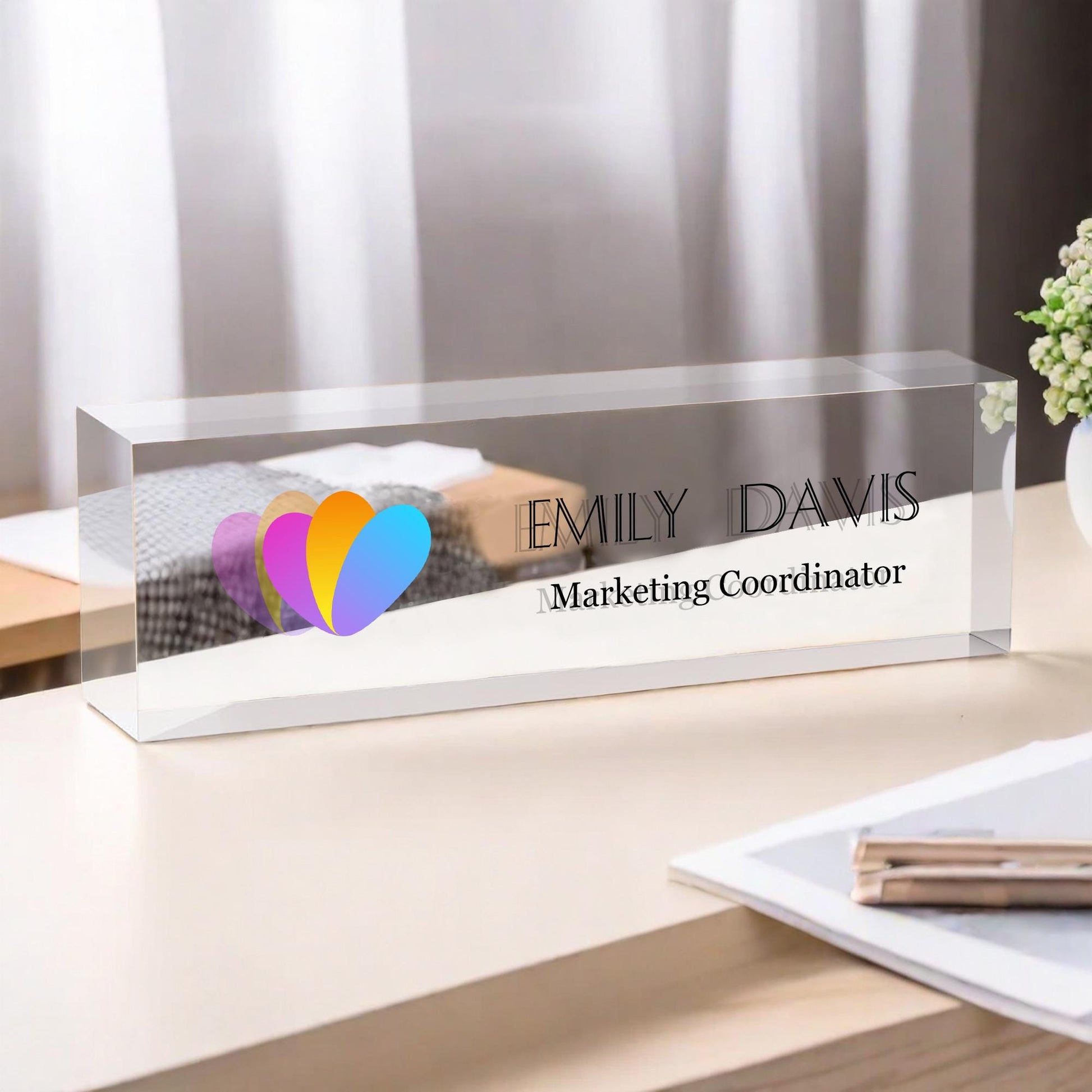 Personalized Logo Desk Plate, Custom Clear Acrylic Name Plate Block, Office Decor, Acrylic Desk Ornament, Executive Gift, Promotion Gifts