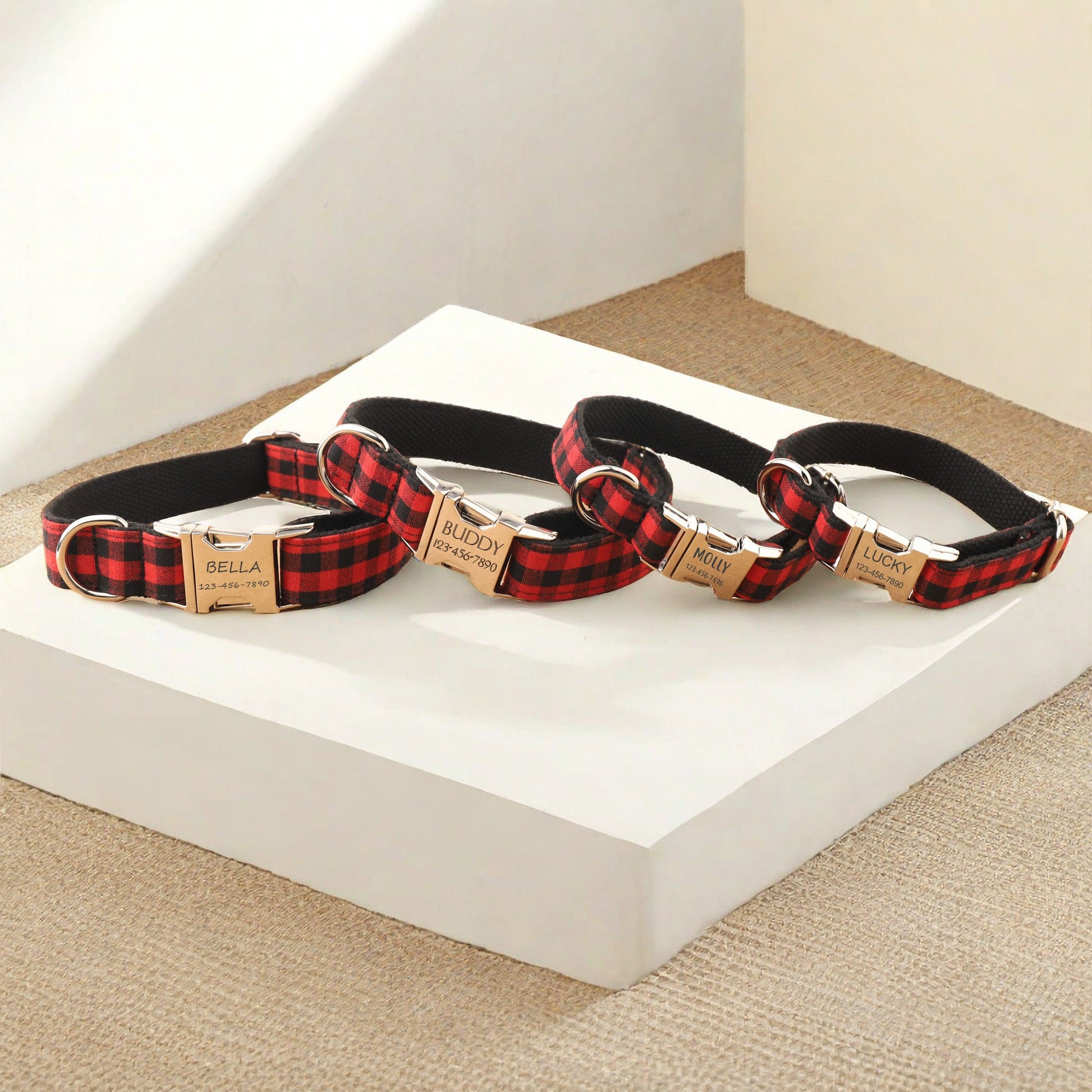 Personalized Red Plaid Dog Collar, Engraved Name Dog Collar, Custom Red and Black Gingham Dog Collar, Cute Gift for Pet, Wedding Puppy Gift