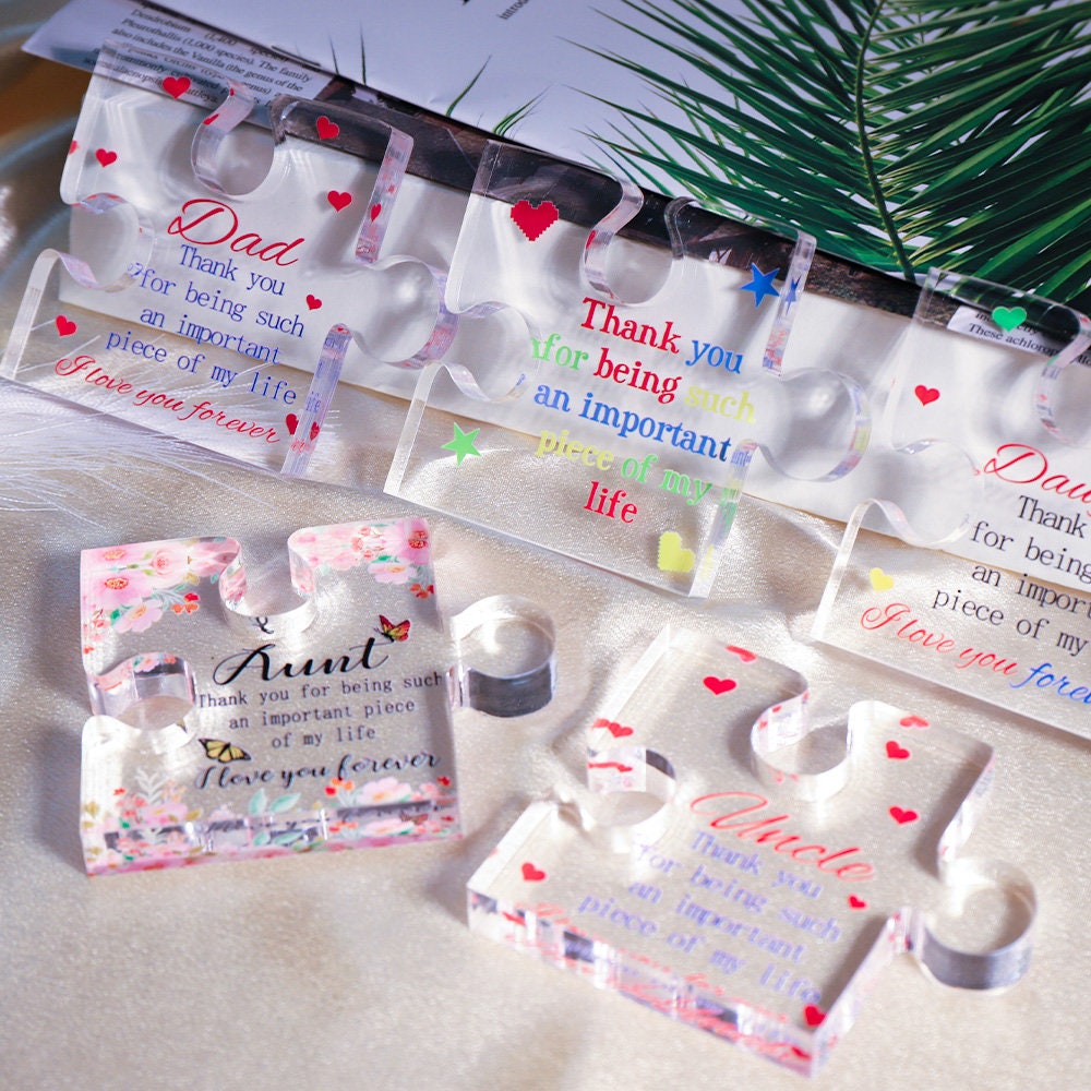 Puzzle Shape Acrylic Block, Engraved Print Acrylic Block, Stand Acrylic Block, Table Decor, Acrylic Plaque, Gift for Dad Mom Family Friends